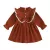 Autumn Corduroy A-Line Dress for Girls with Ruffle Sleeves and Bow